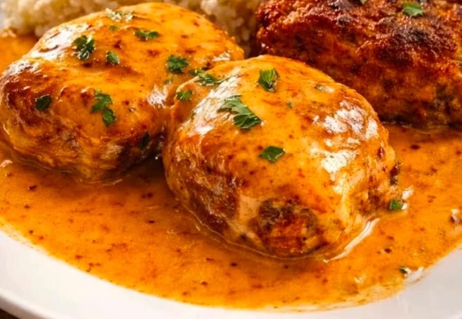 Frikadellen in Paprika-Sahnesauce Ein herzhaftes Gericht mit saftigen Frikadellen und…