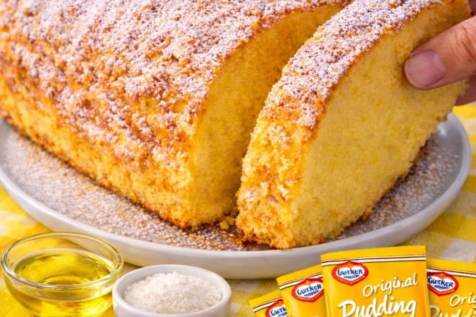 Vanillepudding-Kuchen 🍰✨ Unglaublich saftig & super einfach! Dieser Kuchen ist…