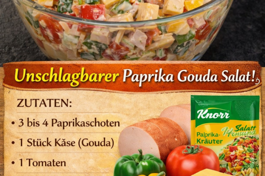 Paprika-Gouda-Salat 🥗✨ Cremig, frisch & in nur 15 Minuten fertig!…
