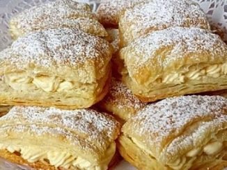 ZUTATEN : 1 Pck. Blätterteig, aus dem Kühlregal 1 Beutel Cremepulver (Paradiescreme), Vanille 50 g Margarine, oder Butter 2 EL Zucker 1 Eigelb etwas Milch […]