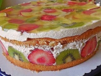 Zutaten Für den Biskuitboden: 3 Ei(er) 1 Prise(n) Salz 80 g Zucker 100 ml Mineralwasser 150 g Mehl ½ TL Backpulver Für die Füllung: 1 […]