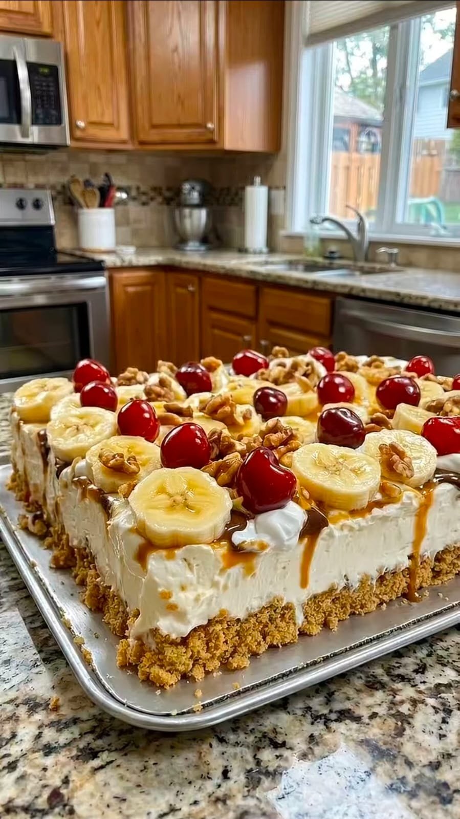 🍰 No-Bake Bananen-Torte mit Nüssen & Karamell – cremig & unwiderstehlich