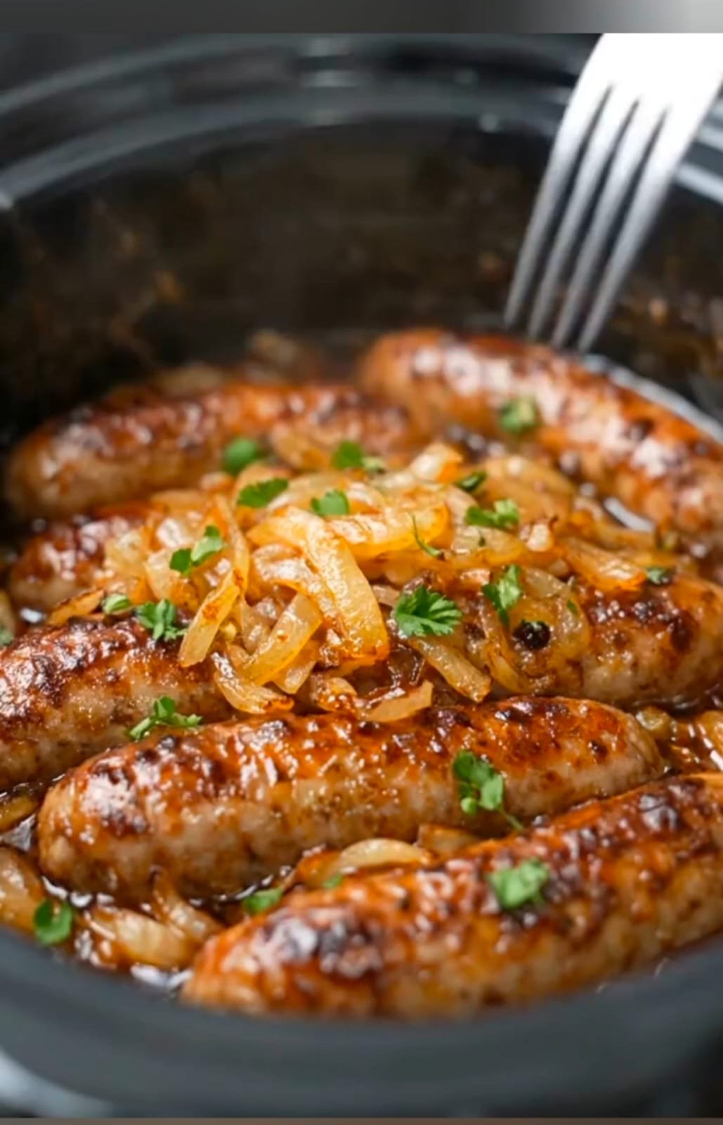 Ein einfaches, klassisches Gericht mit viel Geschmack: saftige Bratwürste vom Rind, kombiniert mit goldbraun gebratenen, leicht karamellisierten Zwiebeln. Perfekt für ein schnelles und herzhaftes Essen.