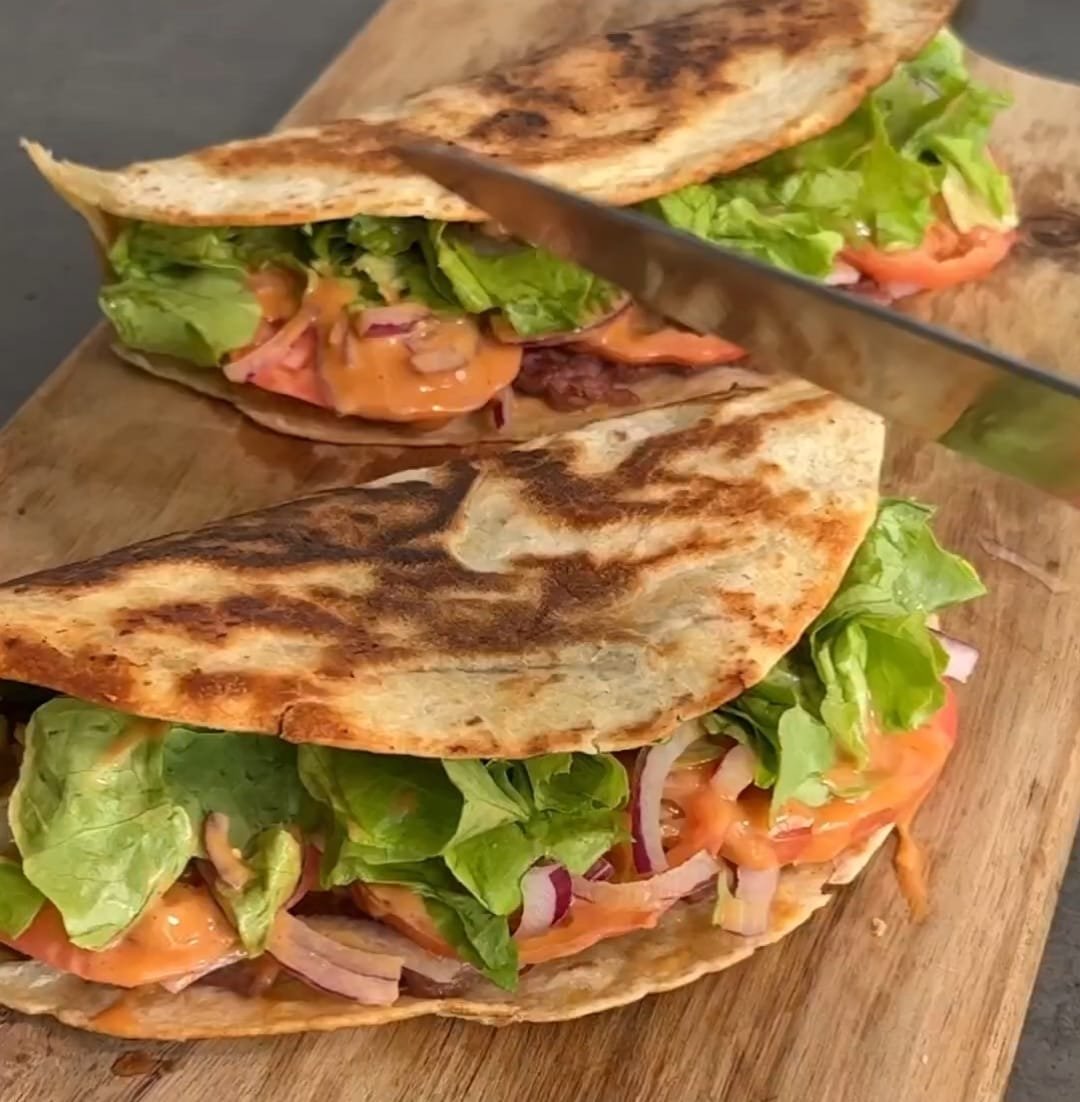 Im Airfryer bei 180 °C ca. 5–10 Minuten backen, bis die Tortilla goldbraun und knusprig ist und der Käse geschmolzen ist. - Servieren