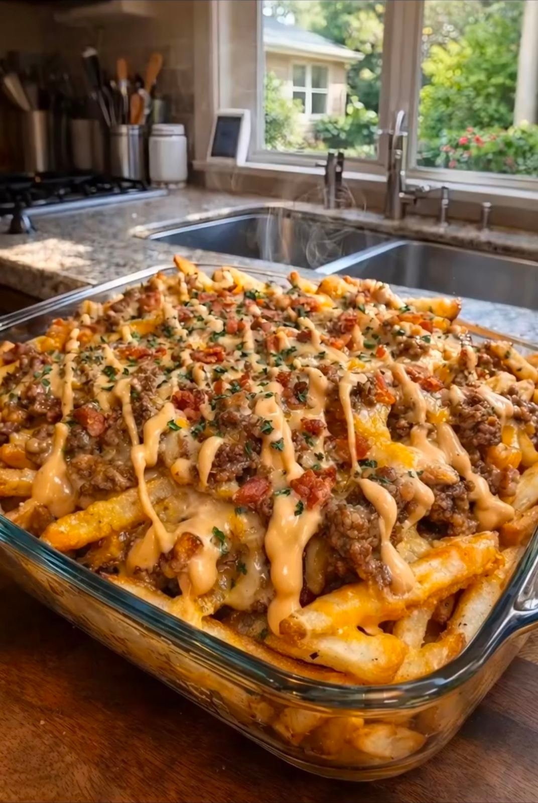 Ein herzhaftes Ofengericht mit würzigem Hackfleisch, knusprigen Pommes und geschmolzenem Käse. Einfach, sättigend und perfekt für alle, die echtes Comfort Food lieben.