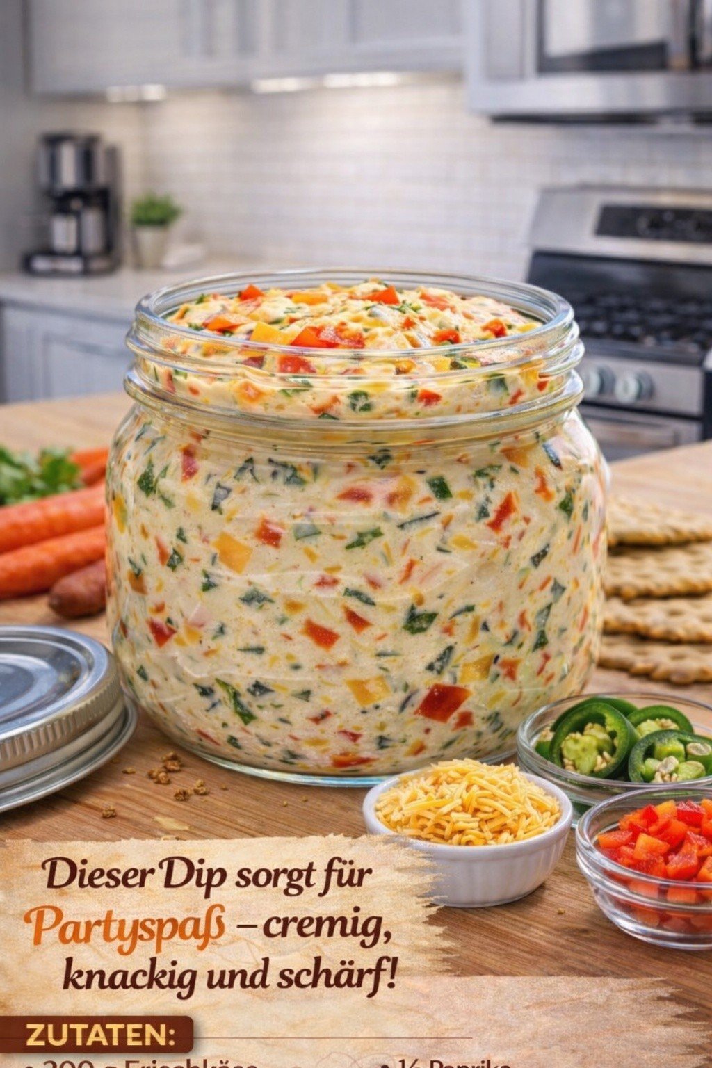 Cremiger Käse-Dip mit Paprika und Jalapeño – Perfekt für Snacks und Partys