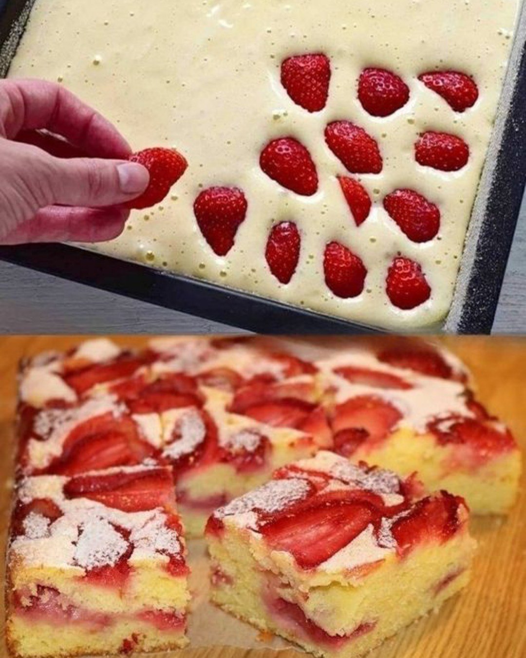 Erdbeer-Biskuitkuchen vom Blech 🍓✨