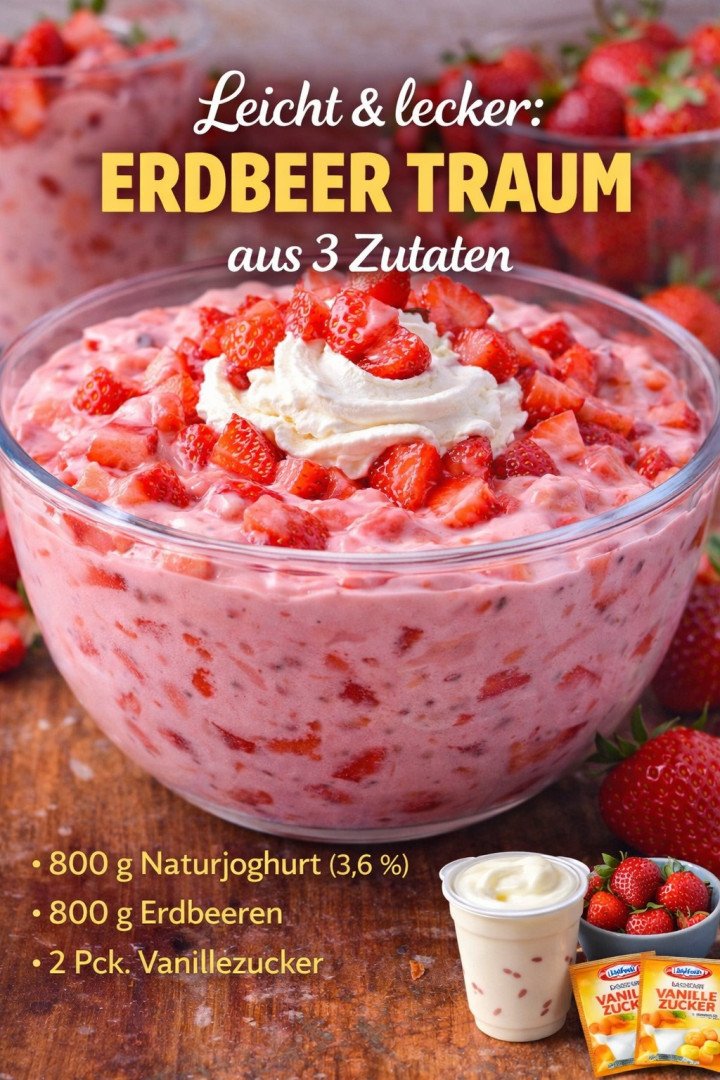 Wenn es draußen warm ist und man Lust auf etwas Erfrischendes hat, aber keine schwere Süßigkeit möchte, ist dieser Erdbeer-Joghurt-Traum genau die perfekte Wahl. Er ist wunderbar leicht, angenehm cremig und überzeugt mit einer natürlichen Süße, die ganz ohne komplizierte Zutaten auskommt.