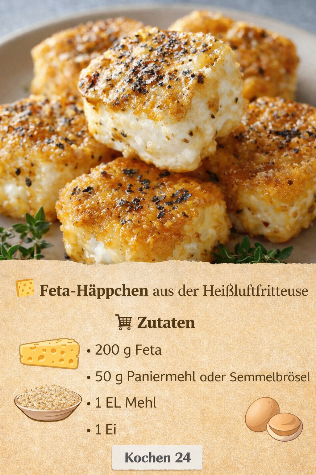 Feta-Häppchen aus der Heißluftfritteuse – knusprig & schnell 🧀✨