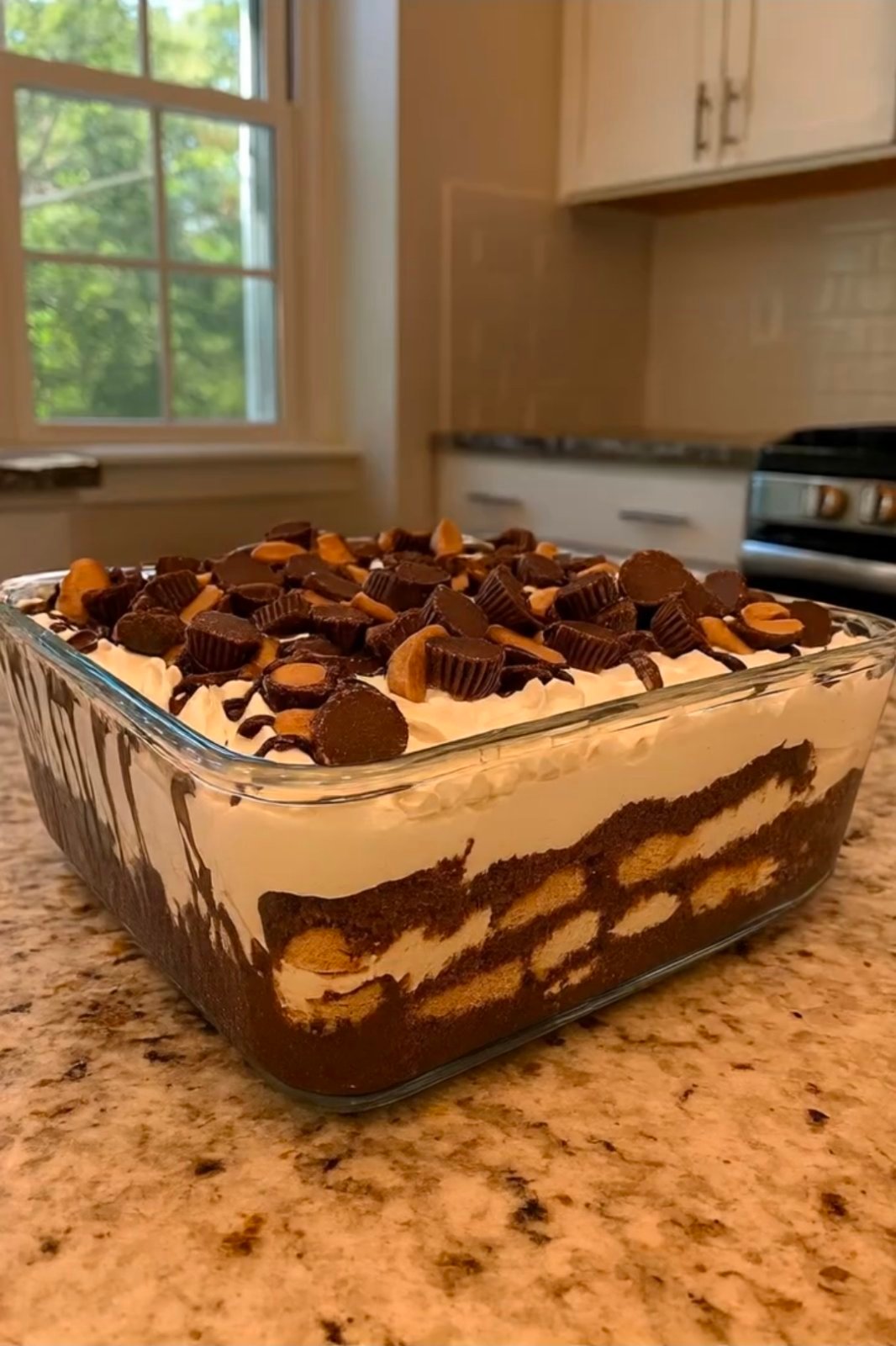 Ein wunderbar cremiges Schichtdessert mit saftigen Brownies, zarter Erdnusscreme und schokoladigem Pudding. Jede Schicht sorgt für eine perfekte Balance aus Süße, Cremigkeit und intensiven Aromen – ideal, wenn du ohne großen Aufwand etwas Besonderes servieren möchtest.