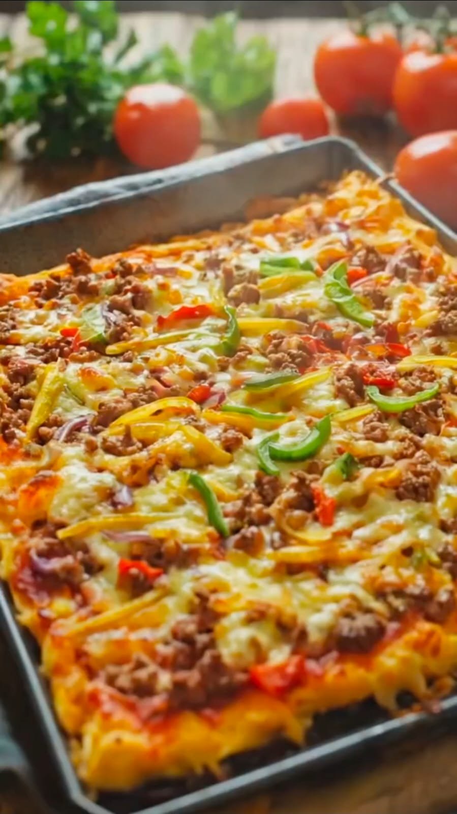 Diese Kartoffelpizza ist die perfekte Alternative zur klassischen Pizza – ganz ohne Hefeteig, dafür mit einem knusprigen Kartoffelboden. Außen goldbraun, innen weich und belegt mit würzigem Hackfleisch und geschmolzenem Käse entsteht ein einfaches, aber unglaublich leckeres Ofengericht.