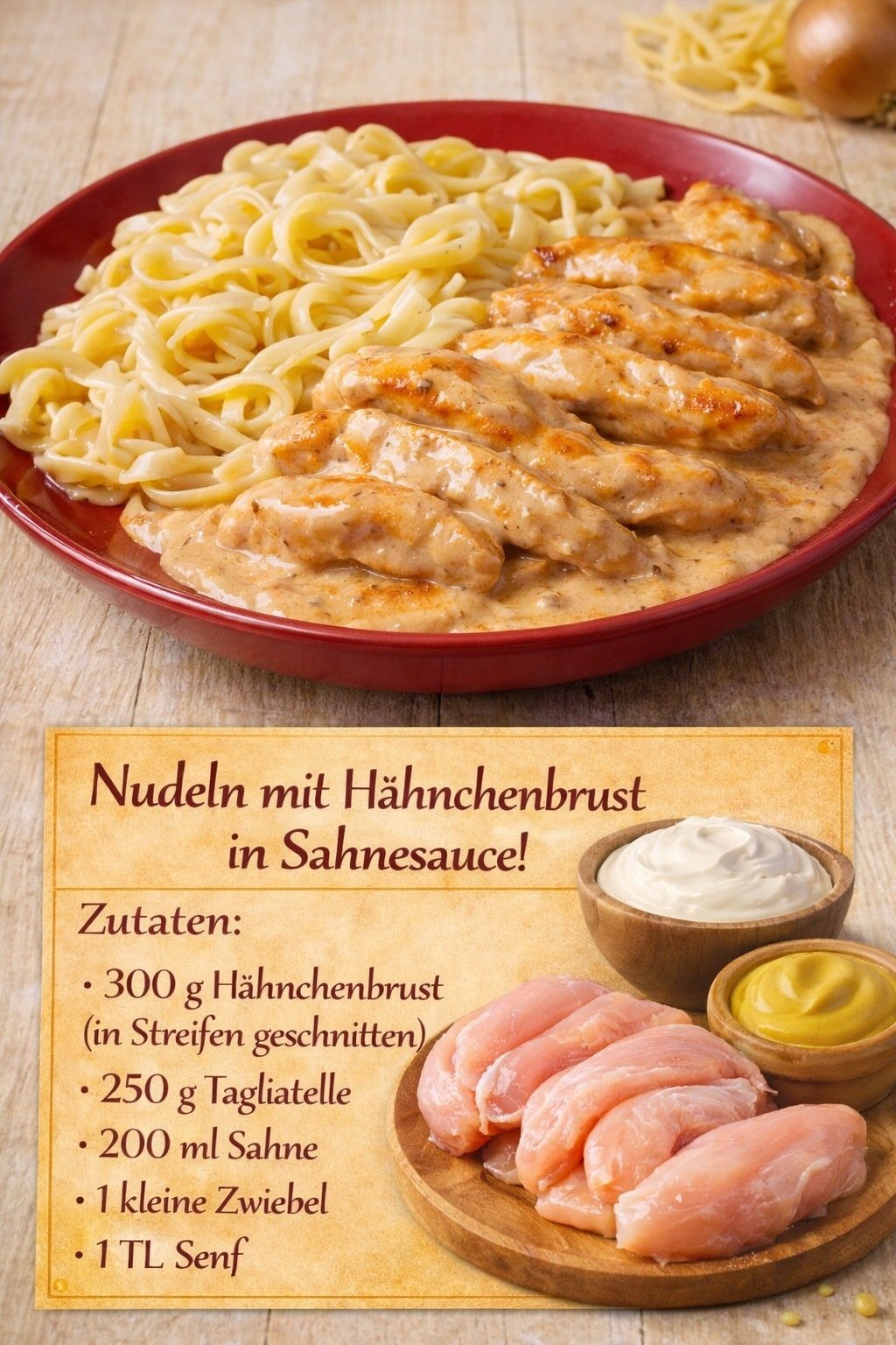 Nudeln mit Hähnchen in cremiger Sahnesauce 🍝