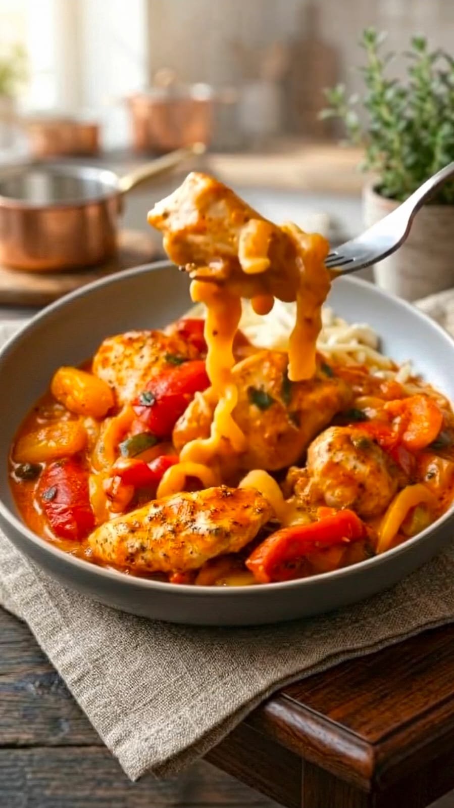 Ein wunderbar cremiges Gericht mit zartem Hähnchen und fruchtiger Paprika. Perfekt für ein schnelles, aber dennoch besonderes Essen – ideal mit Reis, Nudeln oder frischem Brot.