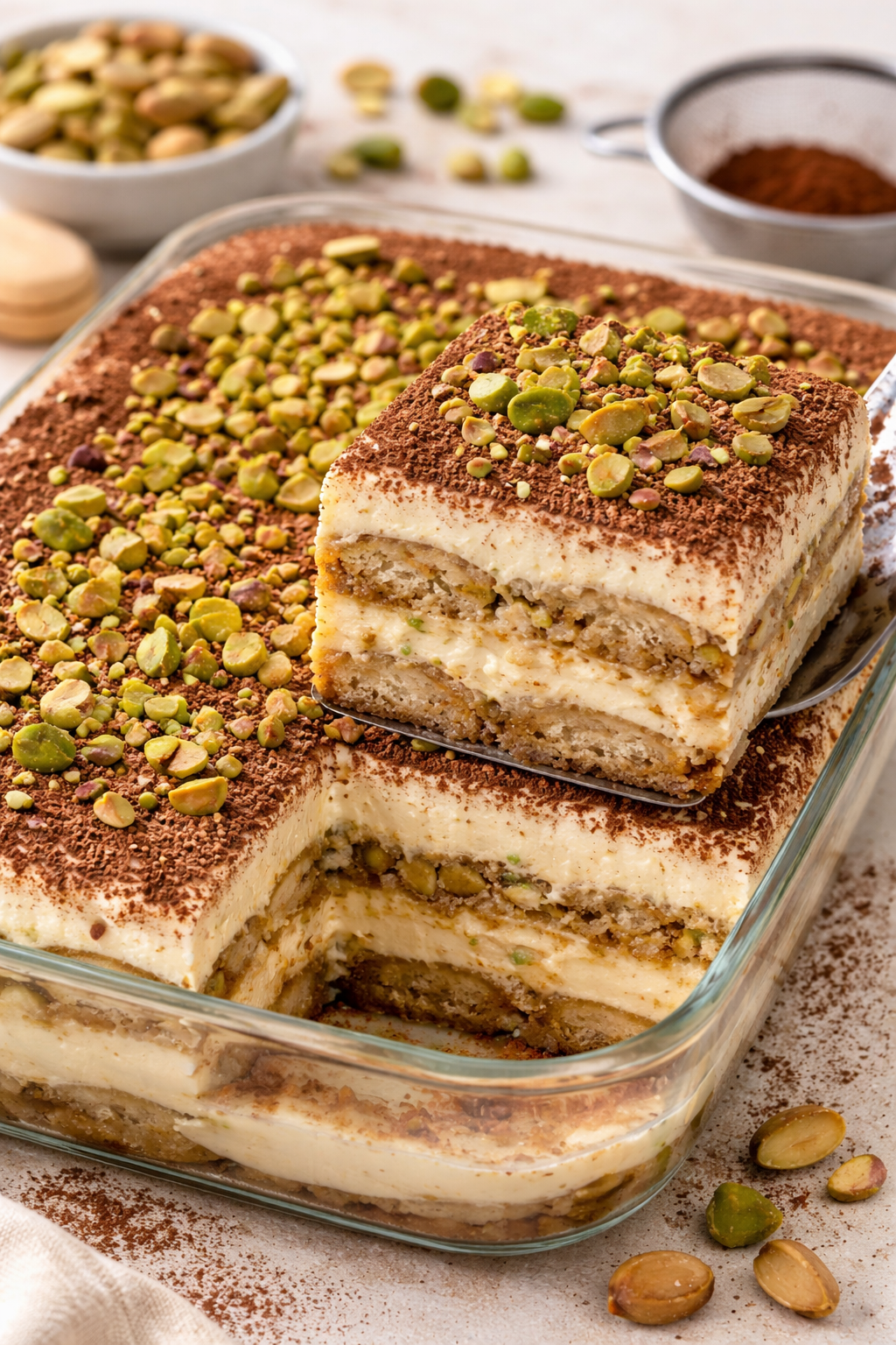 Dieses Tiramisu ist eine besondere Variante des Klassikers: mit feiner Pistaziencreme, luftiger Mascarpone und ganz ohne Backen – perfekt für jede Gelegenheit!