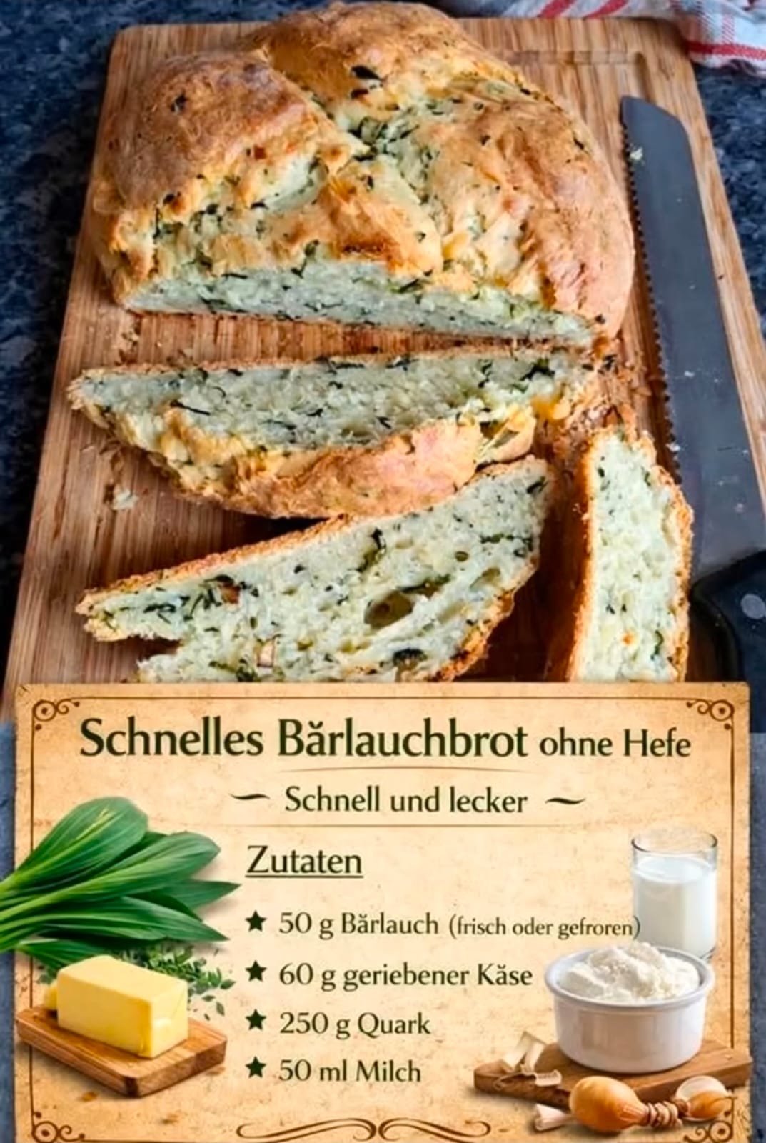 Schnelles Bärlauchbrot ohne Hefe – aromatisch, fluffig & super einfach!